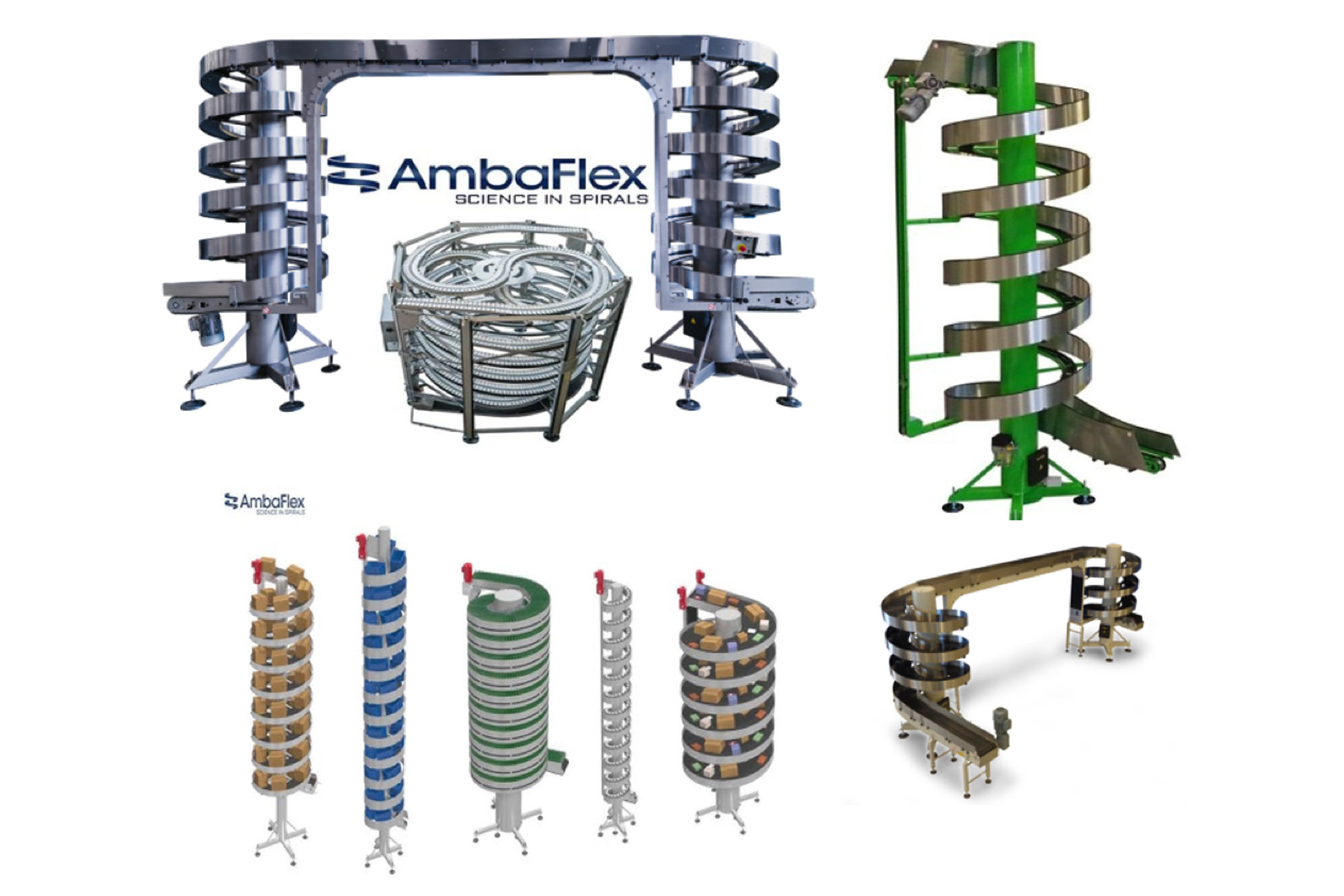 In the packaging market, be it primary or secondary, it's critical that products stay in pristine condition while keeping a high throughput AmbaFlex spirals are known for their longevity and careful handling of goods while maintaining blazing speeds Even multi rows, portal functions, cooling or accumulating is possible with the proprietary technology of AmbaFlex.